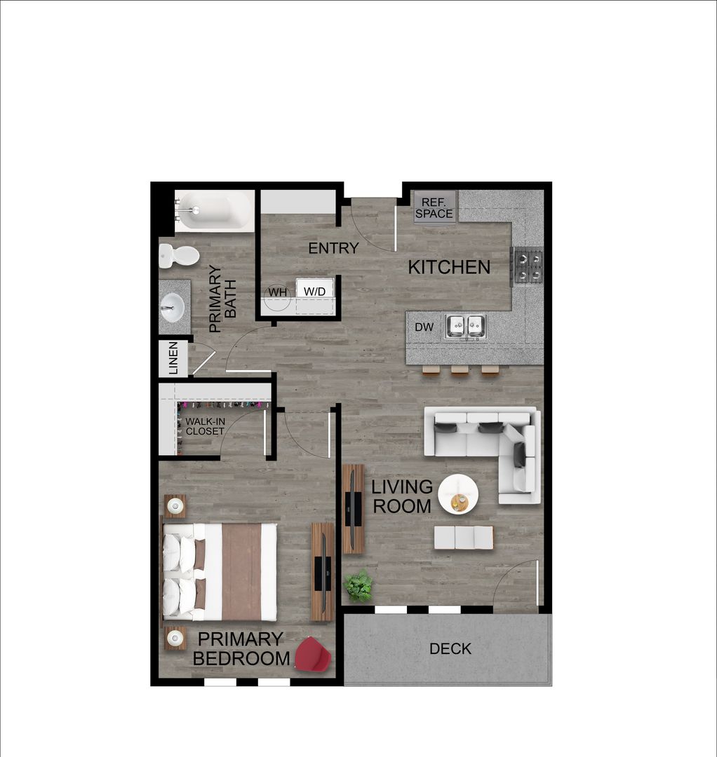 Our 1-bedroom apartment home is designed for modern living. Our Energy-STAR Certified residences feature smart thermostats for comfort and savings, plus gourmet kitchens with smart stainless-steel appliances, granite countertops, washer/dryer and wood-style flooring and more.