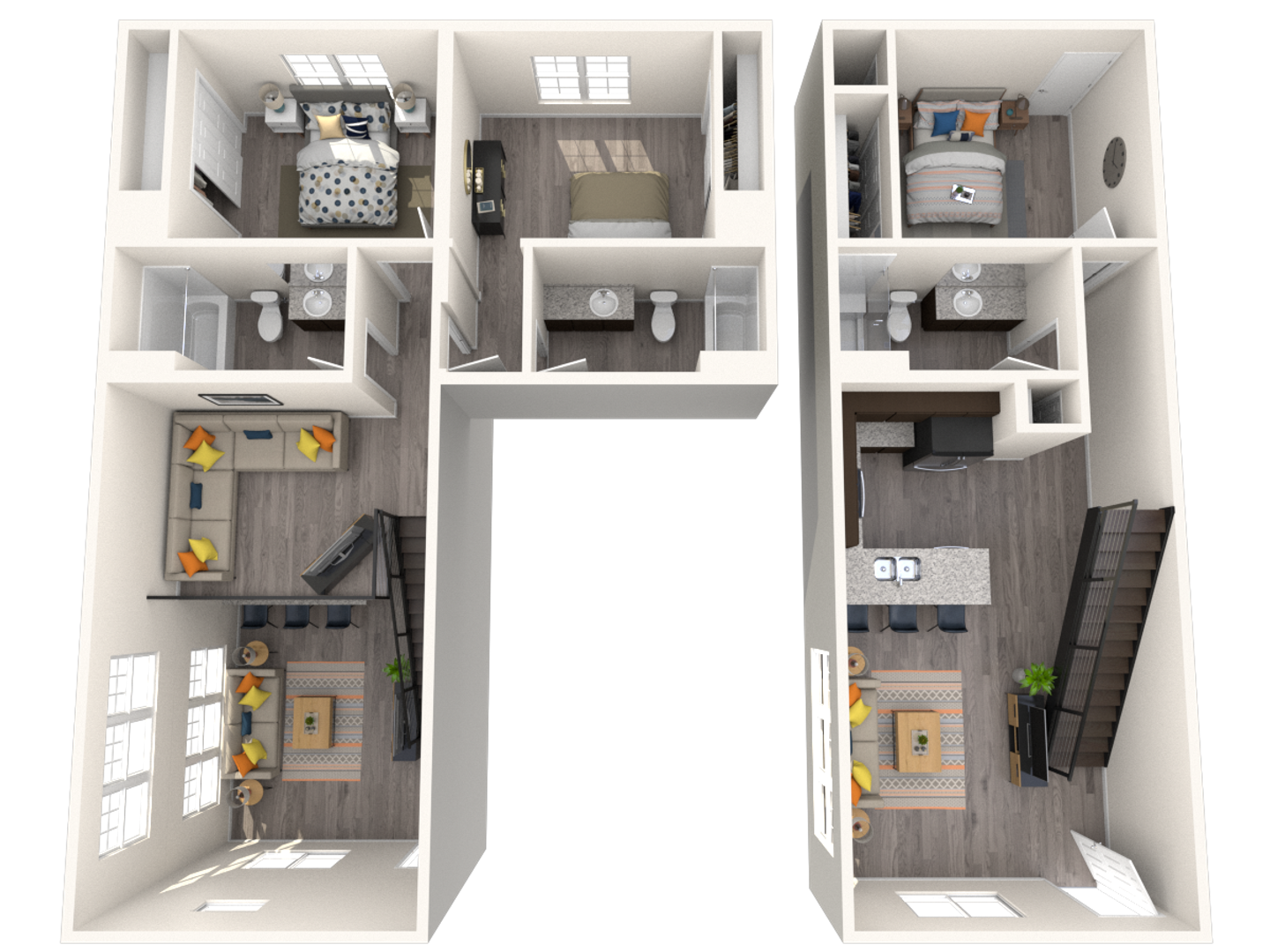 Our 3-bedroom apartment home is designed for modern living. Our Energy-STAR Certified residences feature smart thermostats for comfort and savings, plus gourmet kitchens with smart stainless-steel appliances, granite countertops, washer/dryer and wood-style flooring and more.